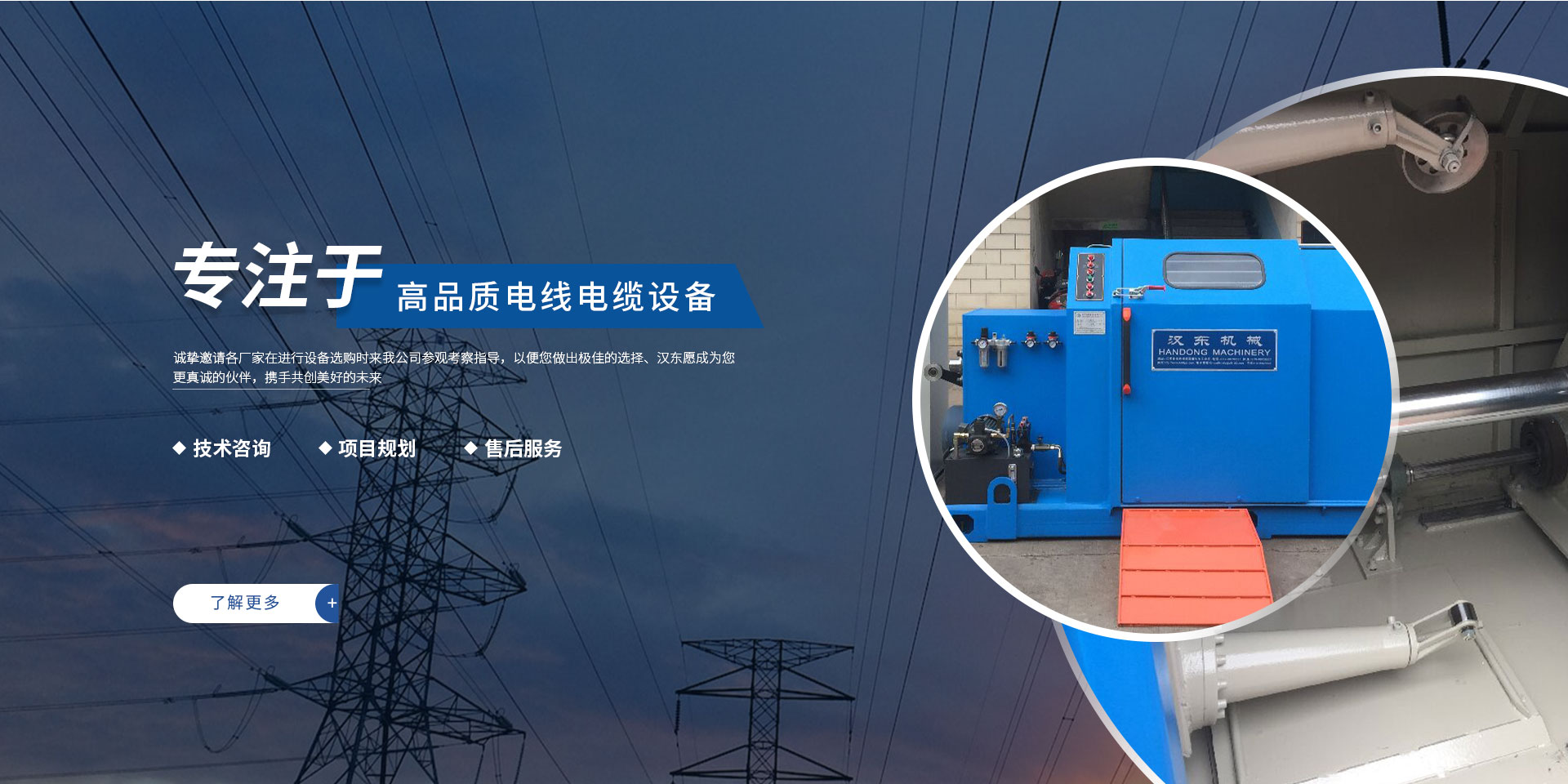 常州漢東機(jī)械始創(chuàng)于2006年,是集電線電纜機(jī)械設(shè)計(jì)、開發(fā)、制造、安裝、調(diào)試為一體化的高科技企業(yè)。本公司自開業(yè)以來,積極引進(jìn)日本,歐美等國外電線電纜設(shè)備之先進(jìn)技術(shù),先后成功推出了達(dá)到行業(yè)先進(jìn)水平的電線電纜設(shè)備,主要產(chǎn)品有擠出、繞包、束線、成纜等電線電纜固定設(shè)備。在提供系統(tǒng)設(shè)備的同時(shí),還向客戶提供售前技術(shù)咨詢、項(xiàng)目規(guī)劃、以及售后服務(wù)。我公司本著“以人為本、科技先導(dǎo)、用戶為上”的宗旨,為客戶提供牢靠的產(chǎn)品與省心的服務(wù)。漢東愿成為您更真誠的伙伴,攜手共創(chuàng)美好的未來! 了解更多+大核心優(yōu)勢(shì)